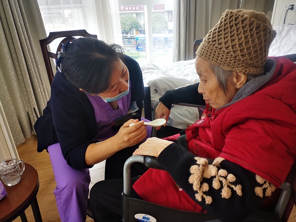 “从事养老护理光当好保姆还不敷,还要当好‘子女’,给老人子女般的爱,才华让老人把公寓当立室。”蒋丽芳这样说同样也是这样做的。一次,公寓里一位年过八十的老人因病情加重,只能躺在床上静养,身体与心灵的双重折磨使得老人心理担负过重,开始拒绝用饭,时常单独流泪,得知这一情况后,蒋丽芳经常抽闲到老人的房间看望他,给他喂饭,陪他聊天,勉励老人与病魔作斗争,争取早日康复。在蒋丽芳的努力下,老人开始主动用饭,并配合治疗……